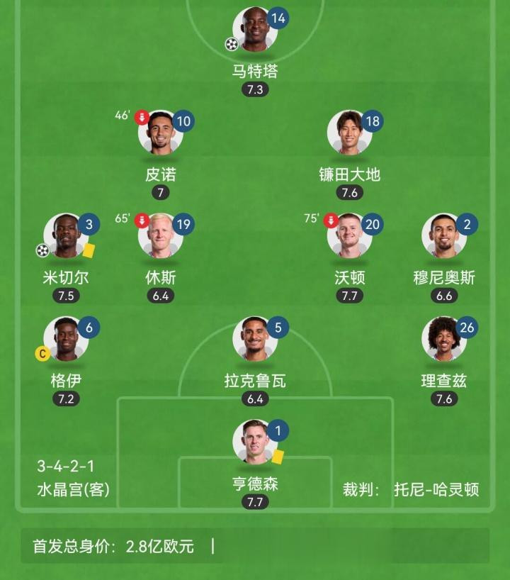 英超第5轮,水晶宫客场2-1西汉姆联
