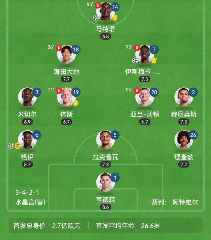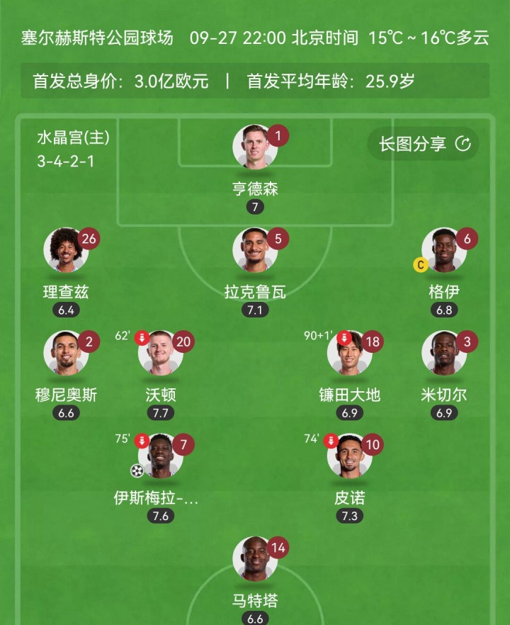 英超第3轮,水晶宫客场3-0维拉